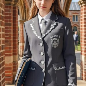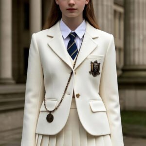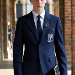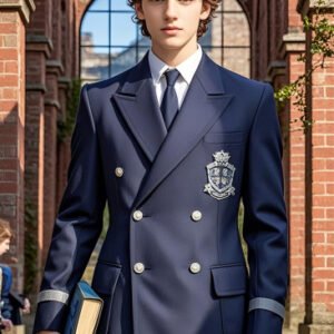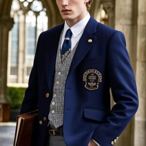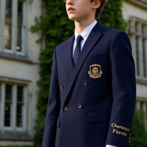 College Style School Emblem Embroidered Worsted Wool Short Suit