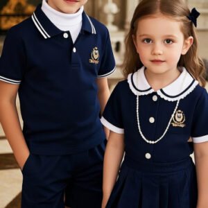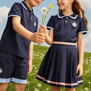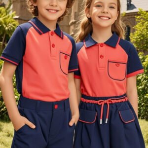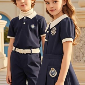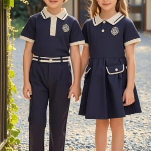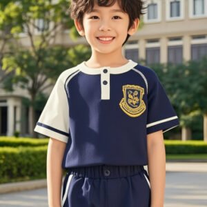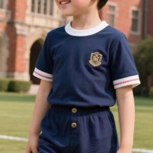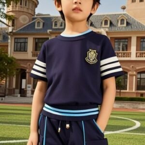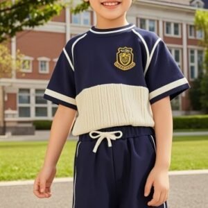 Navy Patchwork Color Light Gold Short Sleeve Shorts