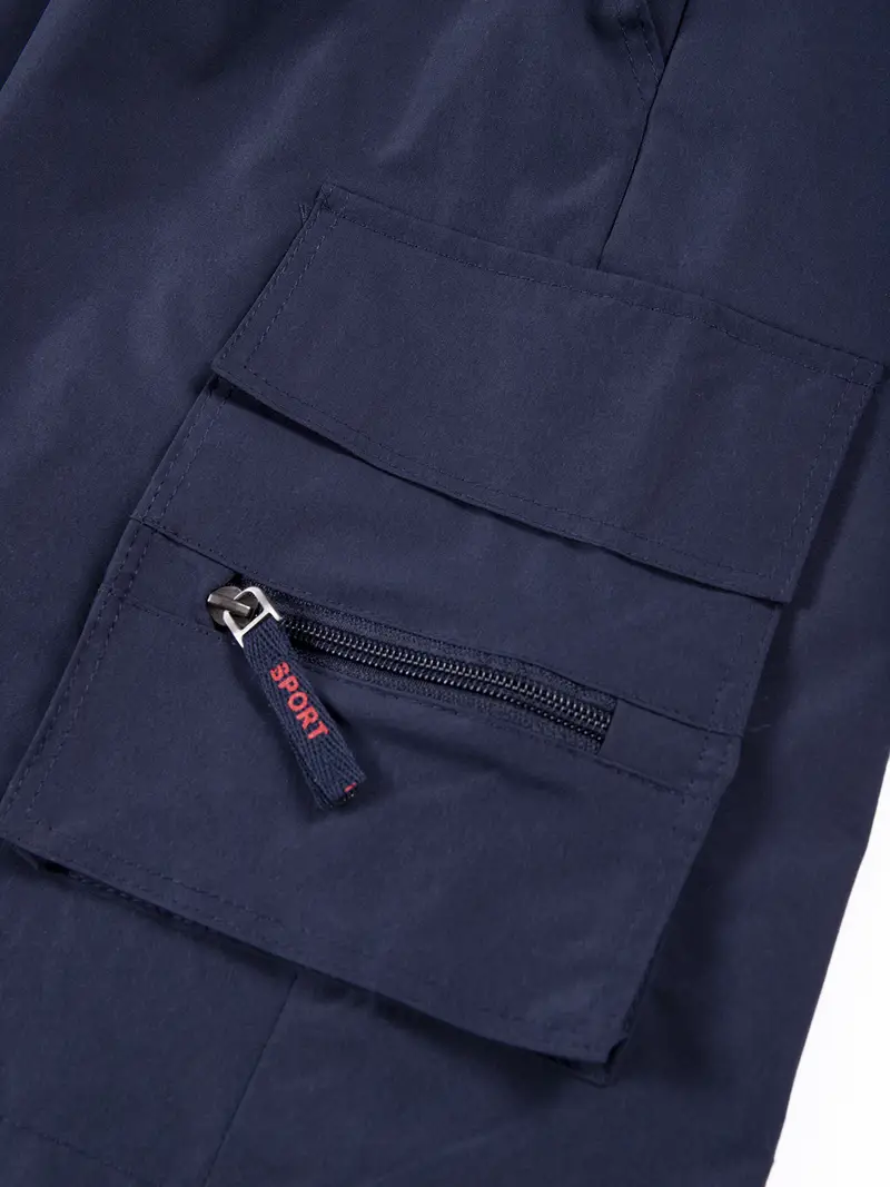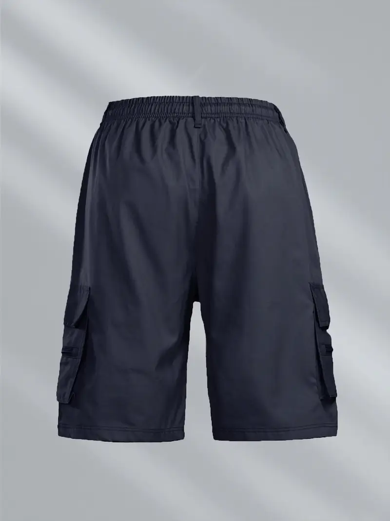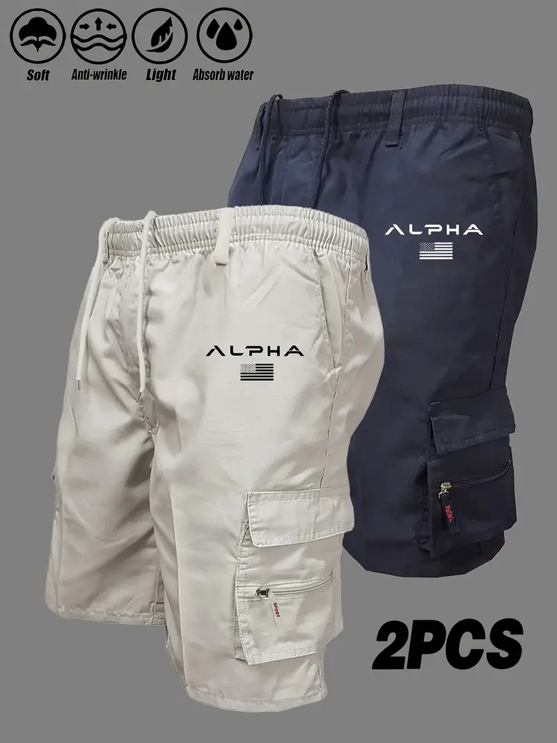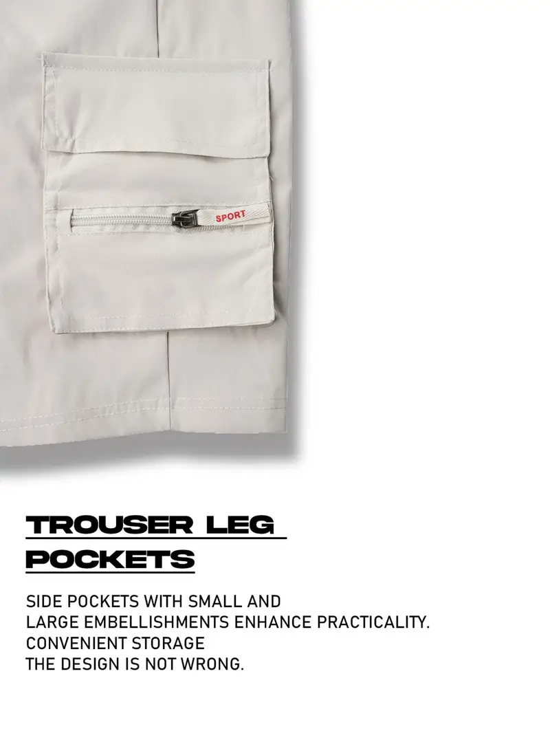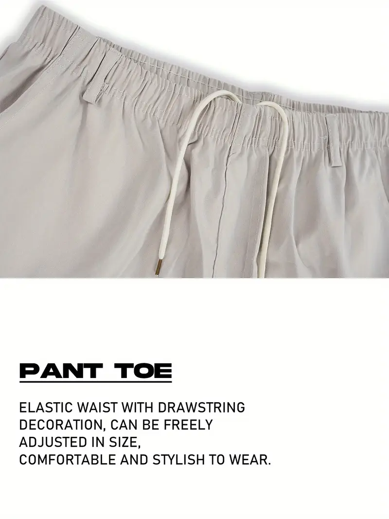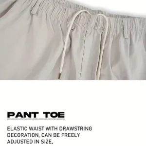 Men’s Letter Print Cargo Shorts with Drawstring Waist and Multiple Pockets, Suitable for Spring/Summer Sports, Hiking, Camping, Fishing, Running, and Training