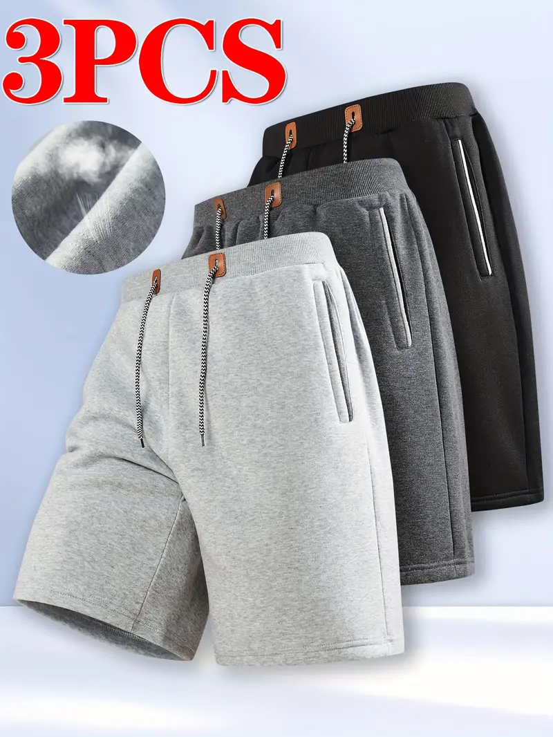 Summer Drawstring Elastic Waist with Zipper Pockets, Casual Athletic Fit for Running, Gym, Training – Black, Gray, Light Gray, Workout Shorts, Smooth Texture Fabric