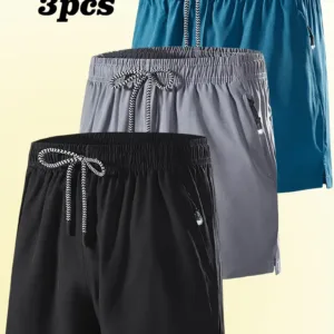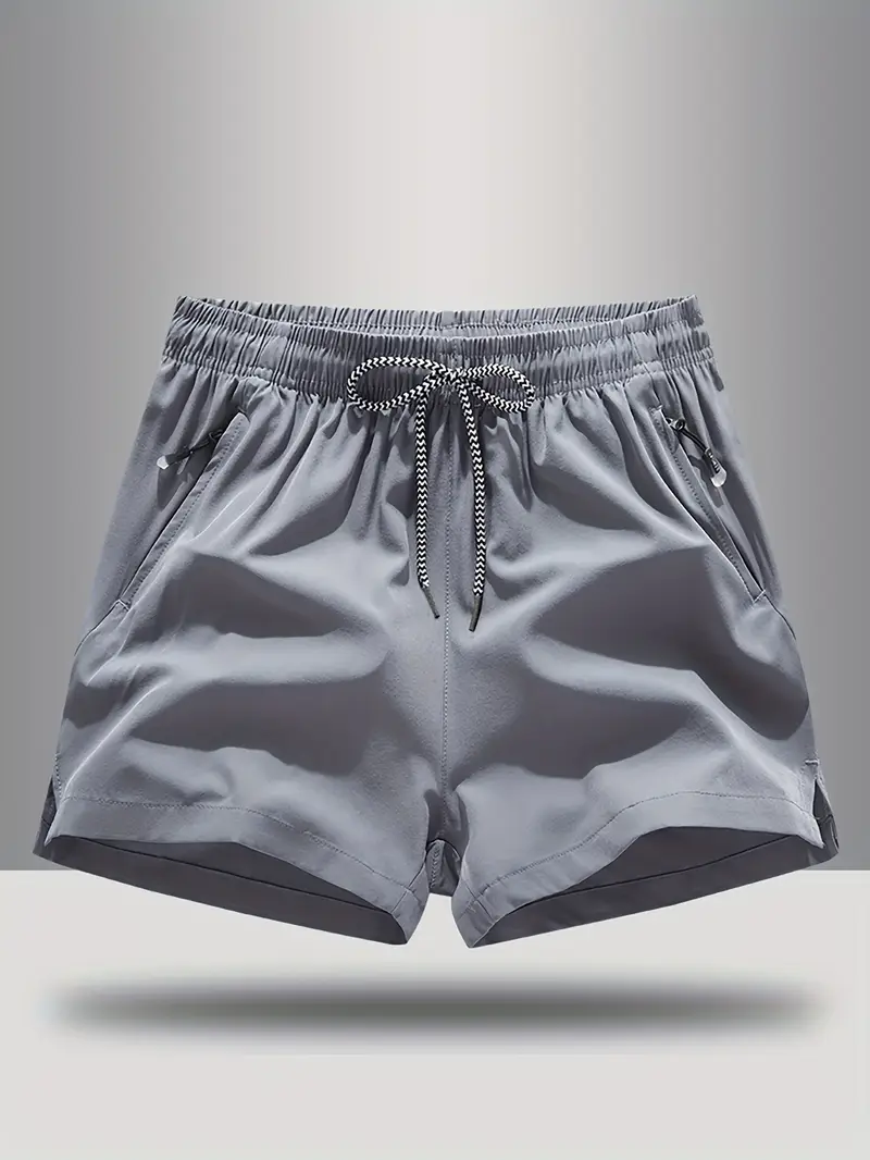 Breathable, Comfortable, Zippered Pockets, Elastic Waistband, Solid Colors (Blue, Gray, Black) for Fitness, Running & Casual Attire, Running Shorts | Minimalist Shorts | Smooth Texture