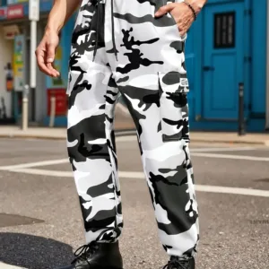 Adjustable Drawstring Waistband with Tapered Ankle and Multi-Pocket Design for Outdoor & Streetwear, Camouflage Cargo Pants for Men, Pants for Men Casual, Cargo Baggy Pants Men, for Man Cargo Pants, Loose Cargo Pants Men