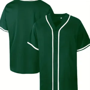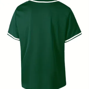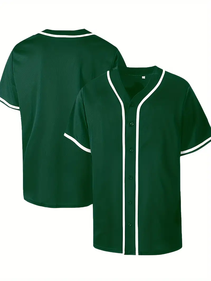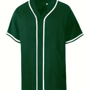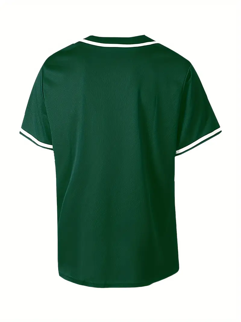 Casual Color Block Men’s Short Sleeve Button Up Shirt, Men’s Retro Classic Baseball Jersey For Training Competition Party