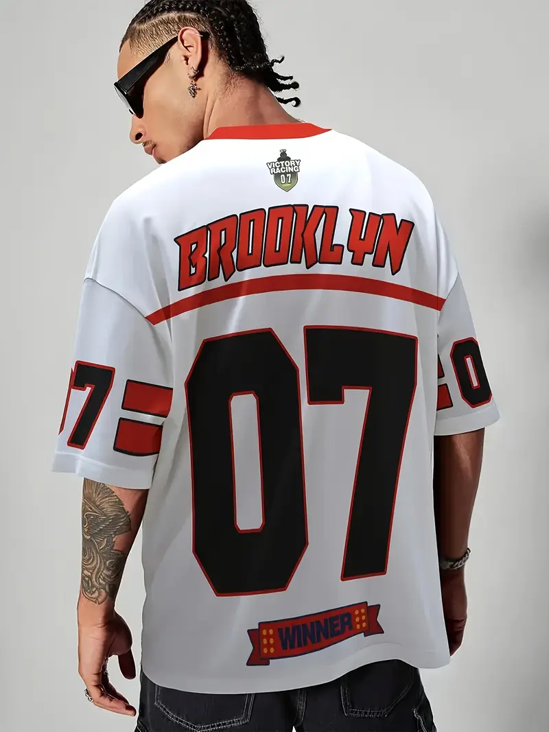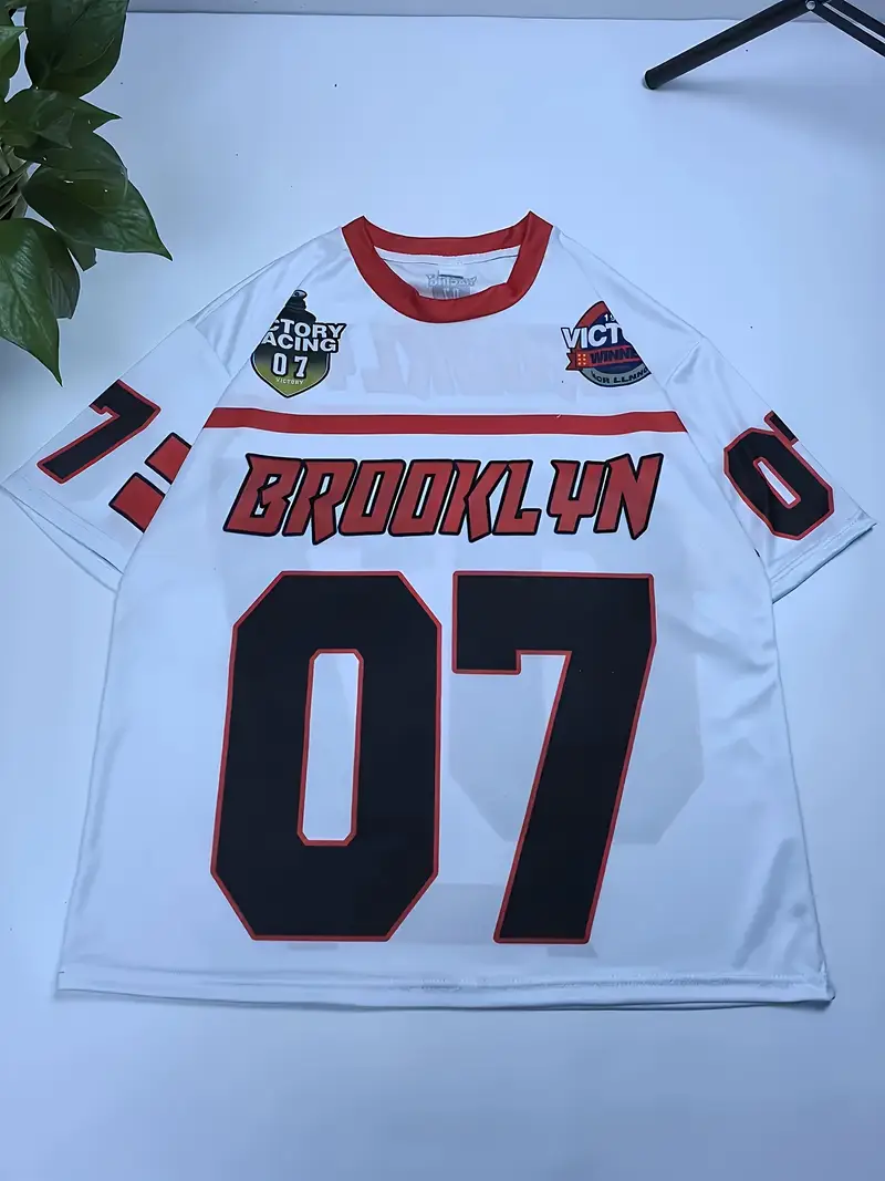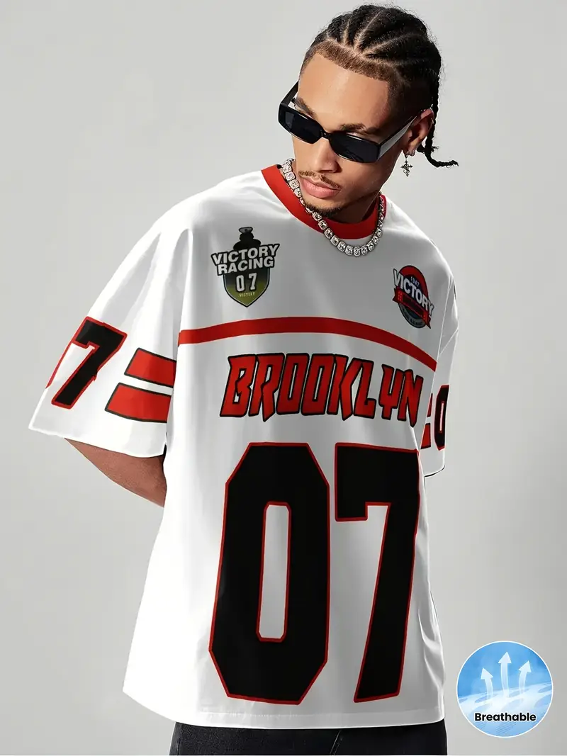 Breathable Polyester, Crew Neck, Drop Shoulder with Letter Print – Perfect for School & Outdoor Activities, Knit Fabric, 100% Polyester, Loose Fit, Short Sleeve