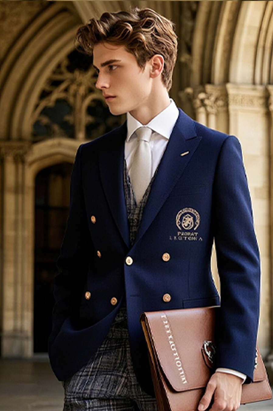 College Literary Style School Motto Embroidered Slim Fit Suit
