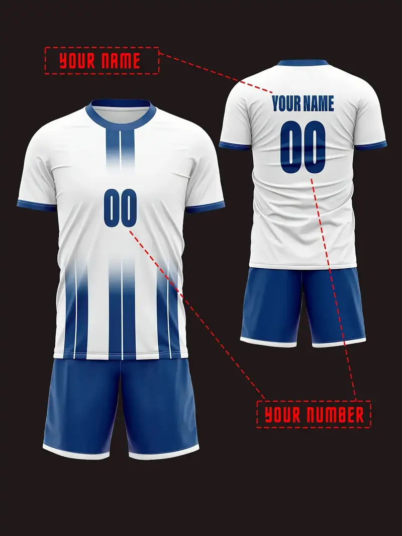 2025 Round Neck T-Shirt Football Jersey for Men, Halloween, Christmas Gift, Two-Piece Top and Bottom, Custom Name and Number Adult Jersey, Newborn Competition Team Training Sportswear, Comfortable Breathable