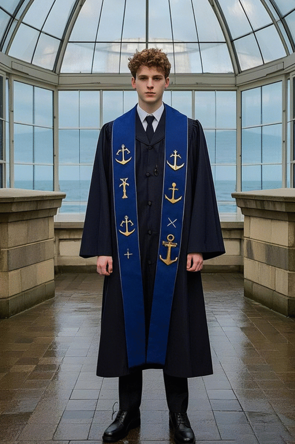 Be the first to review “Double-breasted bachelor’s robe in navy” Cancel reply