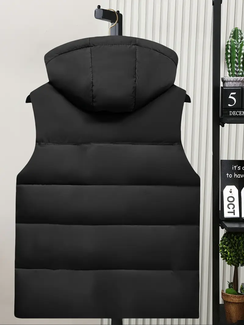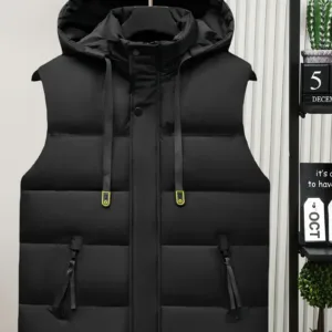 Sleeveless Hooded Jacket, Non-Stretch Fabric, / Color Options, for Fall/Winter Layering, Outdoor Activities, Everyday & Formal Wear – Model 608, Winter Vest, Cold Weather Apparel, Casual Style, Thick