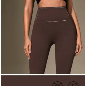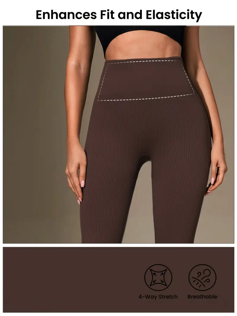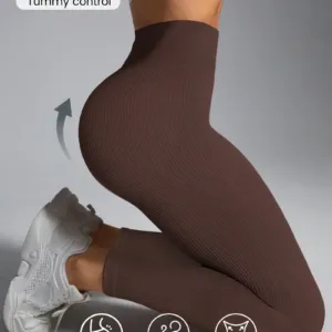 Women’S High-Stretch Seamless Tummy Control Yoga Pants – Full-Length Workout Leggings with Vertical Stripes, Breathable Ribbed Texture & 4-Way Stretch for Core, Running, Pilates, Gym Wear, Sleek Design, Durable Construction, Fitness Enthusiasts