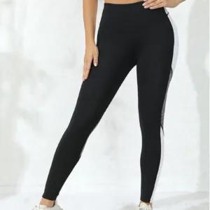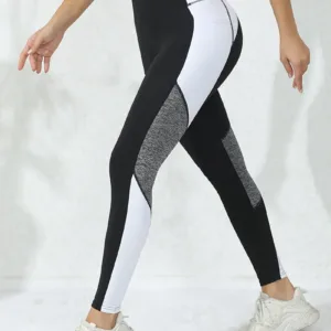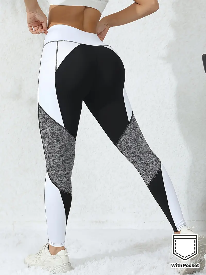 4-Way Stretch High-Waisted Yoga Leggings with 2 Pockets | Women’s Tummy Control Workout Pants – Color Block Design (Black/White/Grey), 7/8 Length All-Season Activewear for Running & Fitness