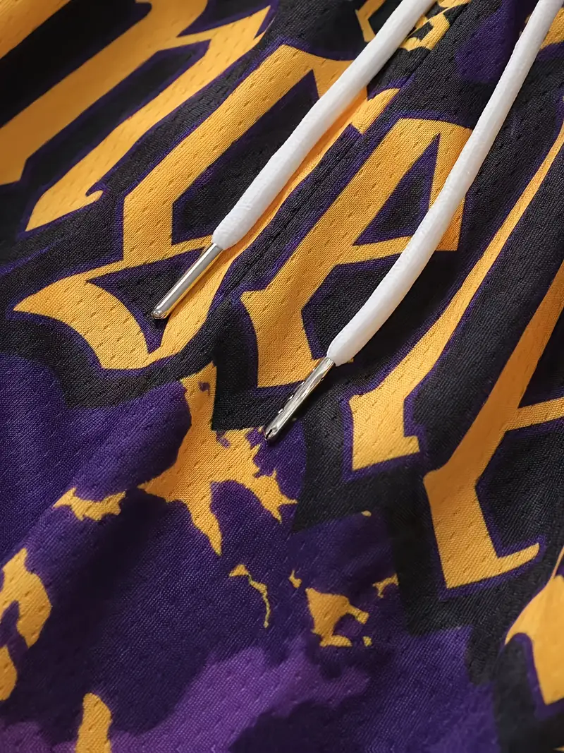 Breathable, Loose Fit with Drawstring Waist, Purple & Yellow Print Design, Perfect for Sports, Running, Yoga, and Outdoor Activities, Sports Shorts|Vibrant Print Shorts|Stretchy Fabric