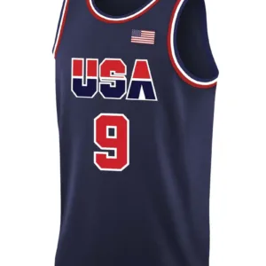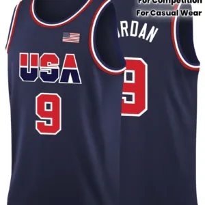 Navy Blue & Red Accent Athletic Shirt | USA -style Design | Stretch Breathable Fabric for Training, Games, Parties | Loose Fit Sleeveless Top | All-Season Basketball Uniform, Sports Apparel, Sporty Look, Durable Construction, Performance Wear, Fitness Enthusiasts