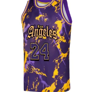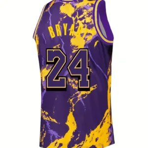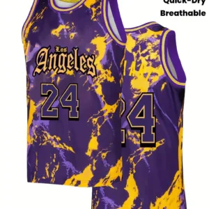 Quick-Dry Athletic Shirt with Number 24, Purple & Yellow Color Block Design – Breathable Loose Fit Jersey for Basketball, Training, Running – All-Season Sports Apparel for Men, Training Gear, Sporty Look, Moisturewicking Material, Performance Wear, Gym Goers