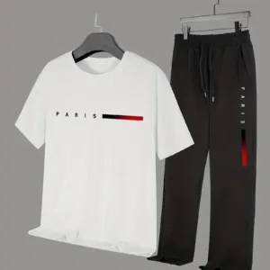 Short Sleeve Top Straight Leg Pants with Paris Print, Fashionable And Trendy, Ideal for Summer, Parties, Casual Outings, And Everyday Wear, Everyday Wear|Short Sleeve Top|Print Trousers