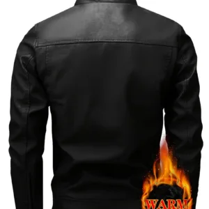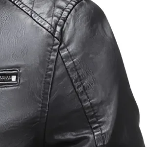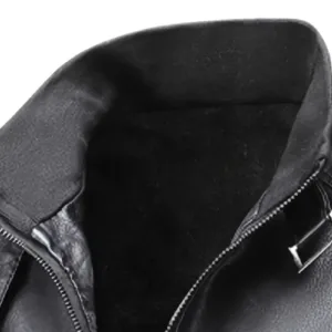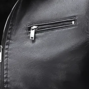Stand Collar Zip-Up Motorcycle Coat, Casual Outdoor Fall/Winter Top with Pockets, Solid Color Polyurethane 100% Woven Fabric, Regular Fit for Daily & Hiking