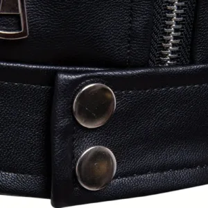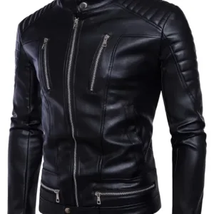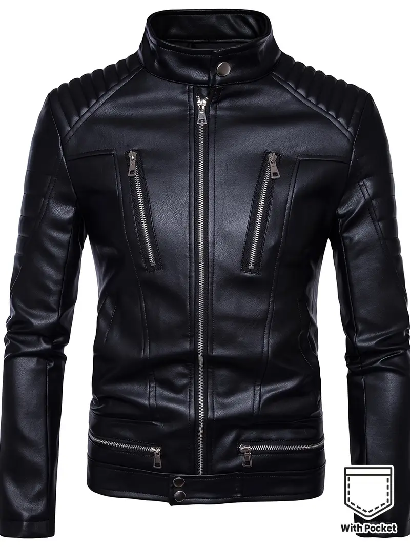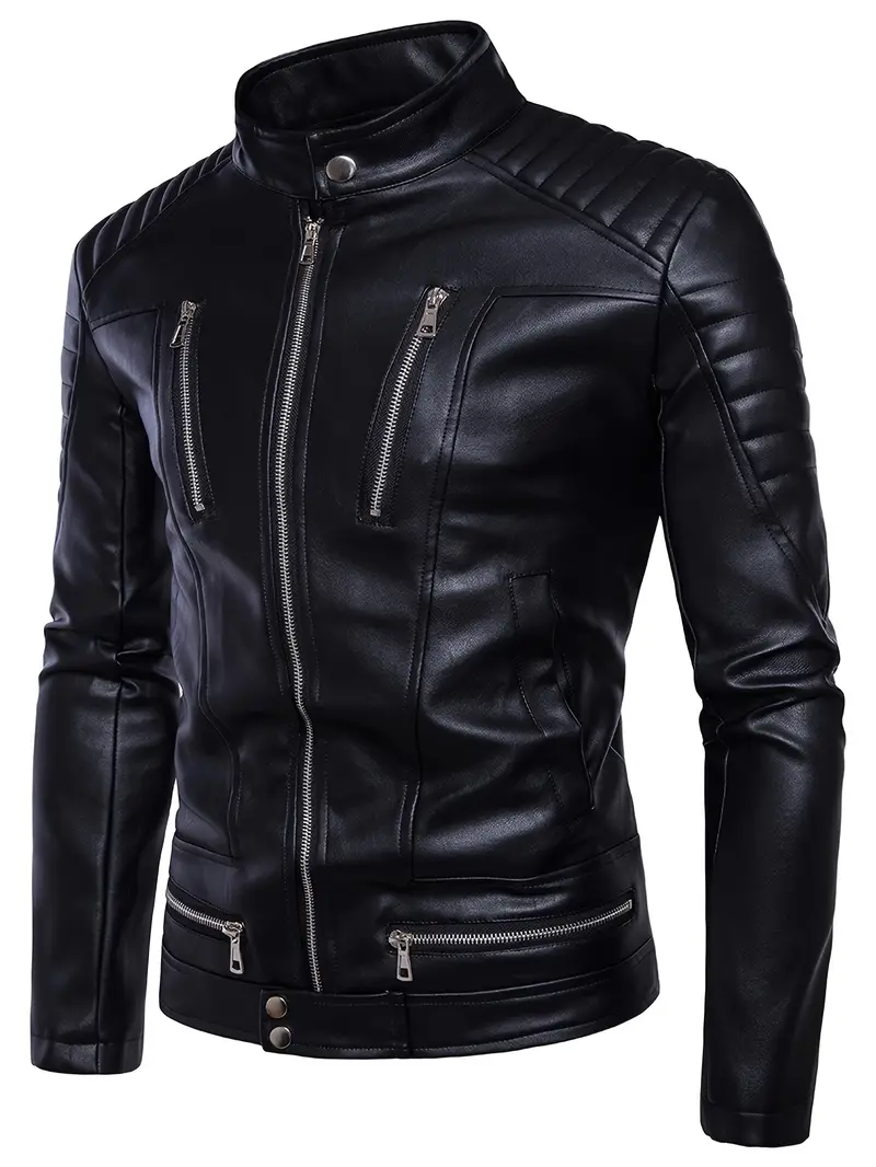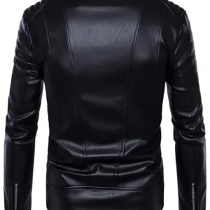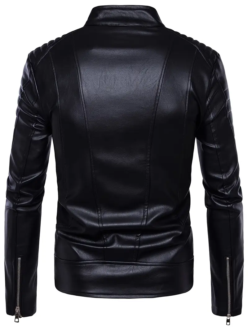 Black PU Leather Biker Coat with Full-Zip Closure, Front Zipper Pockets – Non-Stretch Motorcycle Riding Jacket for Casual & Formal Outfits – Easy-Clean PU Leather Outerwear, Motorcycle Gear, Urban Fashion, Retro Design, Durable Outerwear, Urban Commuters