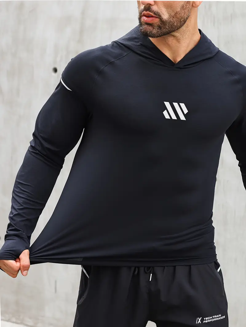 Men’S Slim-Fit Hooded Long Sleeve Athletic Shirt