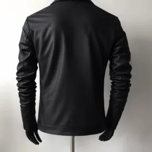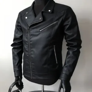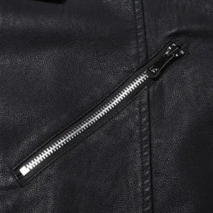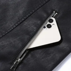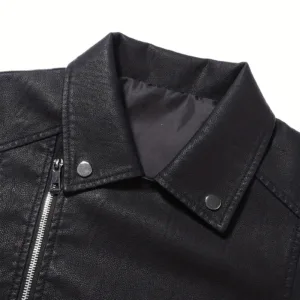 Men’S Vintage Faux Leather Jacket with Asymmetrical Pockets & Zipper Closure – Black Streetwear Style, Long Sleeves, All-Season Wear, Casual Streetwear, Durable Outerwear