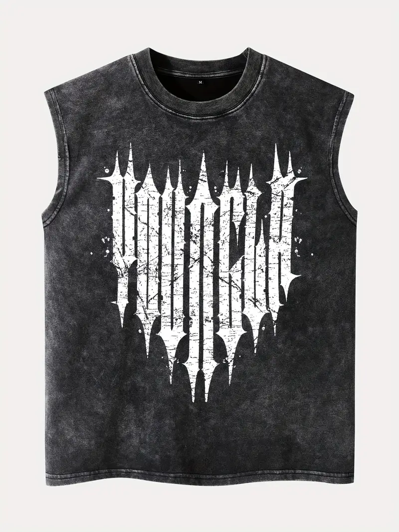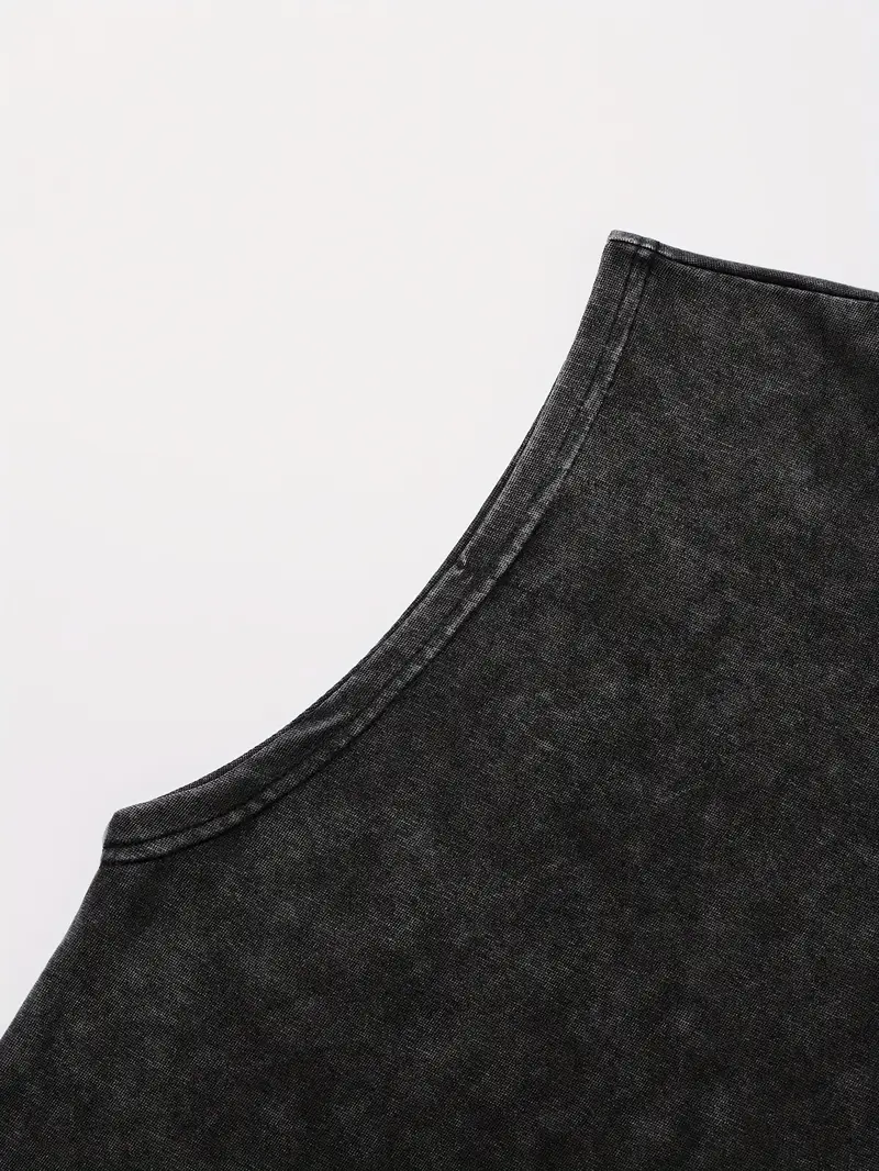 Heavy-Duty Look, Loose Fit Streetwear Vest for Everyday & Formal Outfits – Non-Transparent Casual Shirt, Streetwear Fashion, Distressed Aesthetic, Durable Fabric, Urban Style, Letter Print, Sturdy Construction, Fashion Enthusiasts