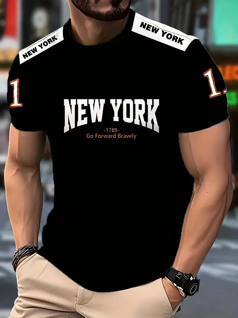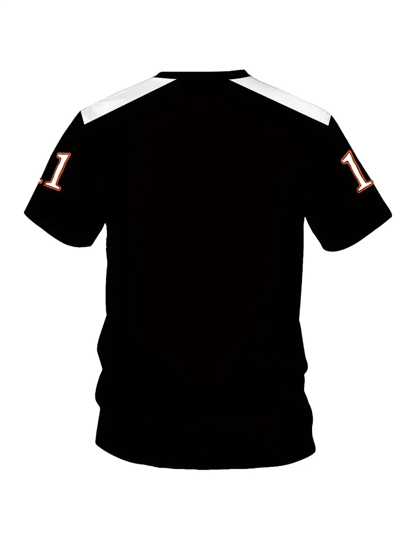 Plus Size Men’s 23 Print Stripes Short Sleeve T-shirt, Casual Round Neck Breathable Quick Drying Clothes