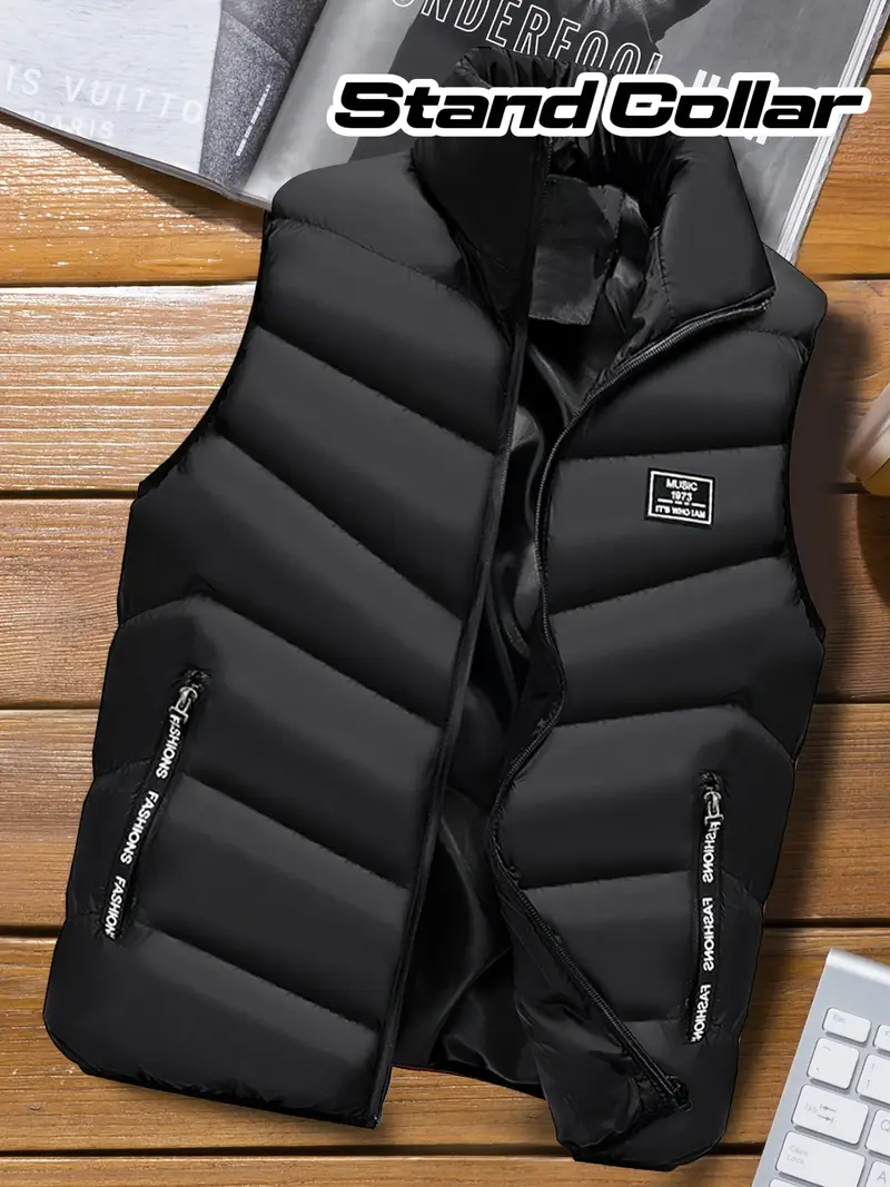 Men’s Sleeveless Vest – Warm, Zip-Up Stand Collar Jacket for Fall/Winter, Polyester, Autumn, Cold Protection