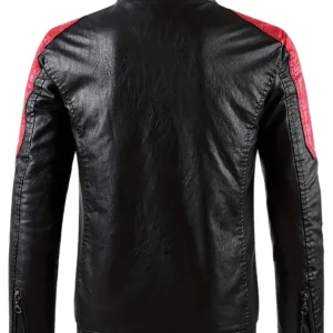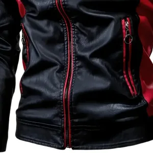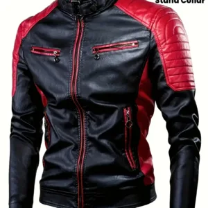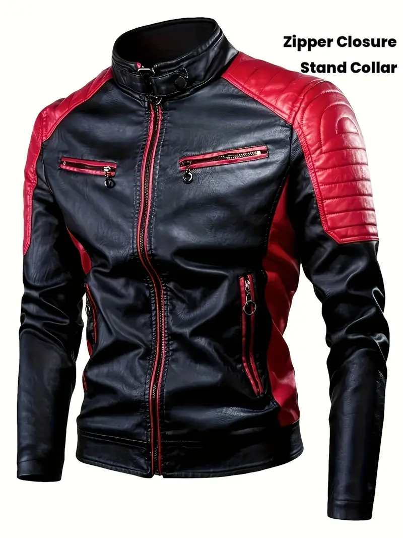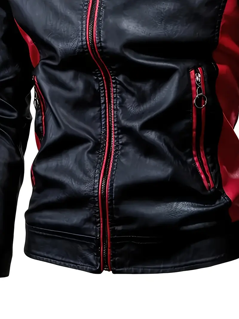 Red & Black Two-Tone Design, Stand Collar, Zipper Closure, Long Sleeve, Casual Streetwear for Spring & Fall