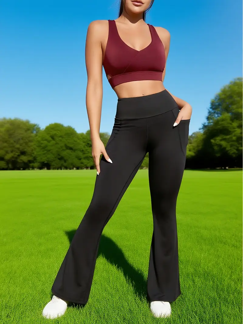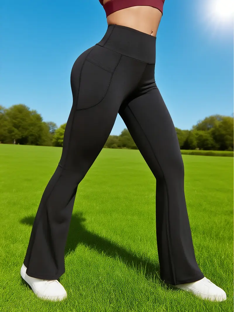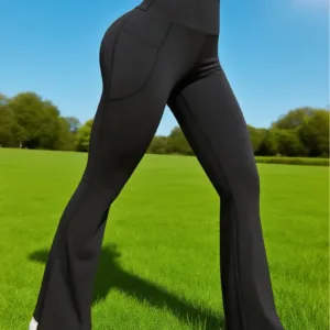 Women’S High-Waist Wide-Leg Pants with Double Pockets – Stretchy, Soft, All-Season Fitness & Casual Trousers, Black, Pants, High Waisted Leggings, Comfortable Fit, Durable Fabric