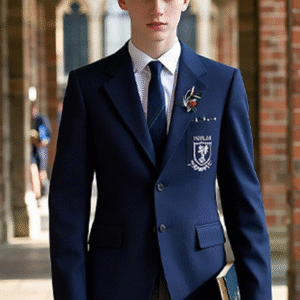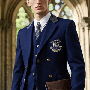 British College Style Gold Trimmed Patchwork Navy Blue Single Breasted Suit